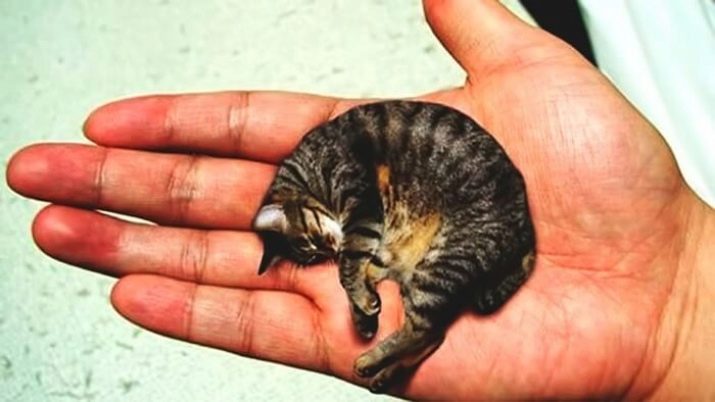 In 2004, the Guinness Book of Records recorded the smallest cat in the world. An adult cat named Mr. Peebles in his 2 years in size and weight corresponds to the level of development of a two-month-old kitten (1300 grams with a body length of 15 centimeters). Genetic anomaly, due to which the cat stopped growing, does not affect its health.