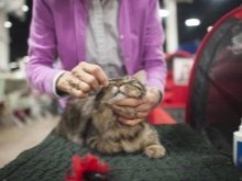 Manks love to look at the water, but they are not very willing to wash themselves in the shower, so if the pet is a homebody, it is better to wash it only in case of emergency: in anticipation of the exhibition, mating or childbirth (you can use a basin and a jug of water to avoid stress in the animal). At the bottom of the bath you need to lay a thick terry towel, turn on the shower with room temperature, wash your hands with special shampoo, wash the animal and gently rinse without touching the ears. After bathing, it is necessary to wrap the cat in a towel. After 5 minutes, this towel must be changed to dry. In the room where the cat dries, there should be no drafts, it is advisable to warm the air to 25-27 degrees, ideally, the animal should be kept in a towel until it dries completely.