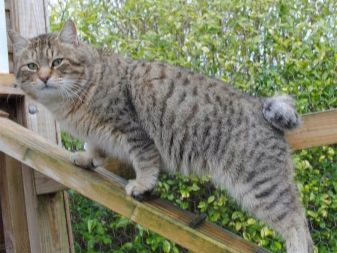 The cat, indeed, is like a lynx, which, in addition to the short tail, is evidenced by the tassels at the tips of the ears, powerful paws with fairly developed muscles. The length of the tail of the animal usually does not exceed 5 cm, the color of the cat is usually sandy-brown with dark marks throughout the body. The pads of the fingers of this cat are dark, the head is large, pear-shaped.