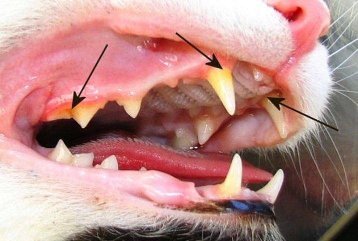 Domesticated individuals often feed on soft feeds and do not have the ability to remove plaque from their fangs. Slices of food may also persist in the oral cavity, and salt deposits may appear. Over time, stones form in areas adjacent to the gums.