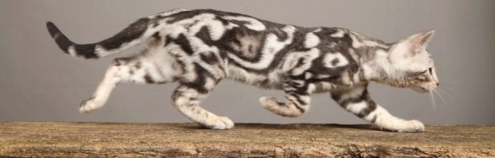 Variant of drawing on bengals may vary. Marble in such beauties can be of the type of “cloak” or “sparble”. In the case of a raincoat color, the pattern will be less noticeable and expressive. With it, dark stripes are almost buried in the general color background.