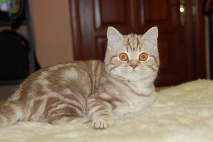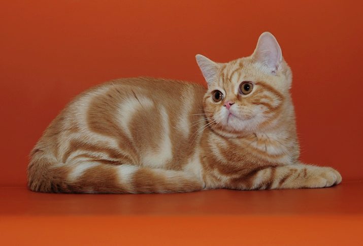 Delicate and elegant marble can often be found in the color of a British or Scottish cat. These species differ from each other only in the structure of the auricles. The Scottish aristocrats are bent forward and directed downward.