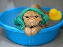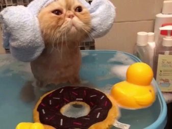 Some young animals love to swim, and this feature is preserved in them even to an adult and even to an advanced age. Despite the fact that there are no special problems with washing such pets, they should not be bathed for longer than the recommended 15-30 minutes.