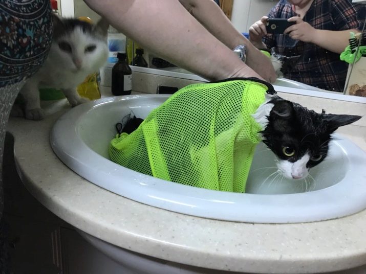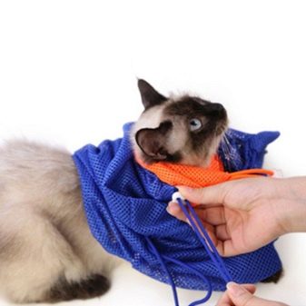 When bathing a cat, someone does not need any auxiliary accessories, someone necessarily needs nets, fixing collars or special bags.