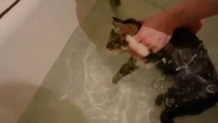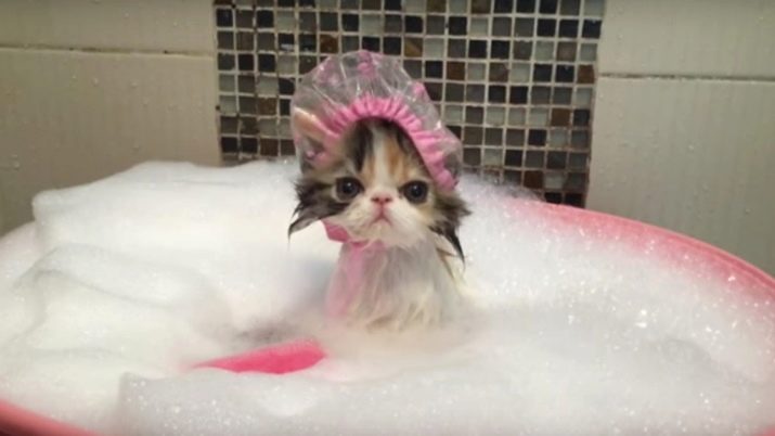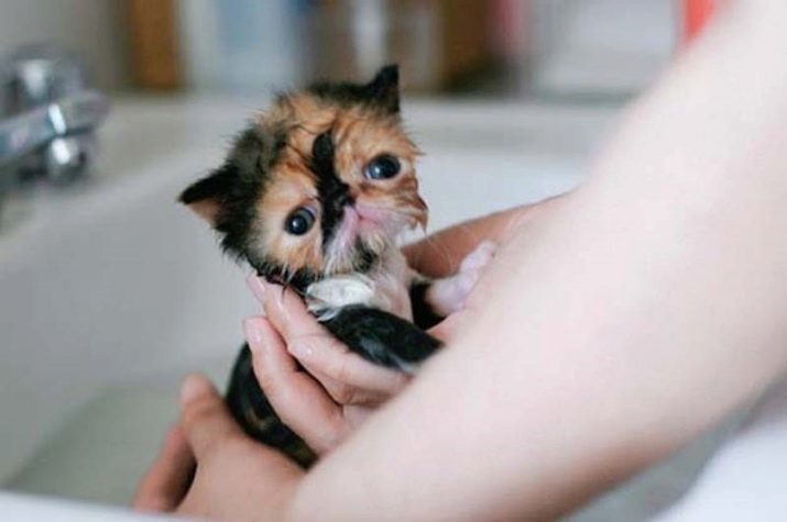 In the case when the baby needs a full bath, you should use only specialized zoo shampoos designed for kittens.