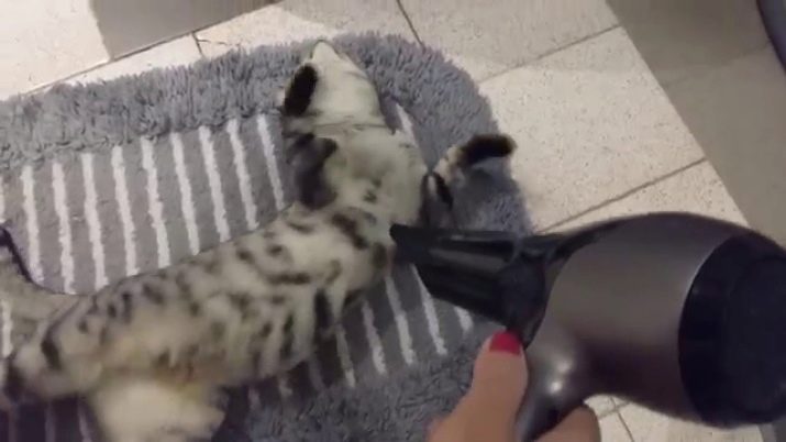 Some caring owners, trying to help the animal quickly put themselves in order, try to blow dry their pets. The use of this appliance is not forbidden only if the cat or cat is well-known for drying the hair dryer and does not cause panic.