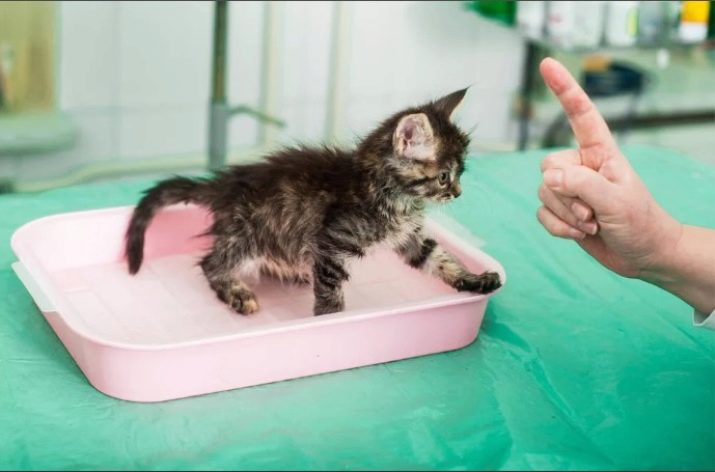 - The best time for the first trip is 20-40 minutes after eating. Take the baby to the toilet, put your paws right in the tray. At the same time, pet the cat, politely “purr” with him, he should not have a sense of danger.