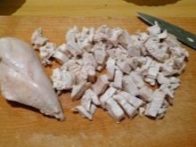 - boiled and finely chopped meat of low fat content (beef or chicken);