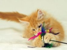 We must not forget about toys, especially if the baby is hyperactive. For a 3-month-old kitten, you should buy soft and safe products: balls, fish, mice made of cloth. The main thing is that the toys do not have small details that the cat may accidentally choke on during games. And also the kitten needs to buy a scratching post so that it does not spoil the furniture in the house.