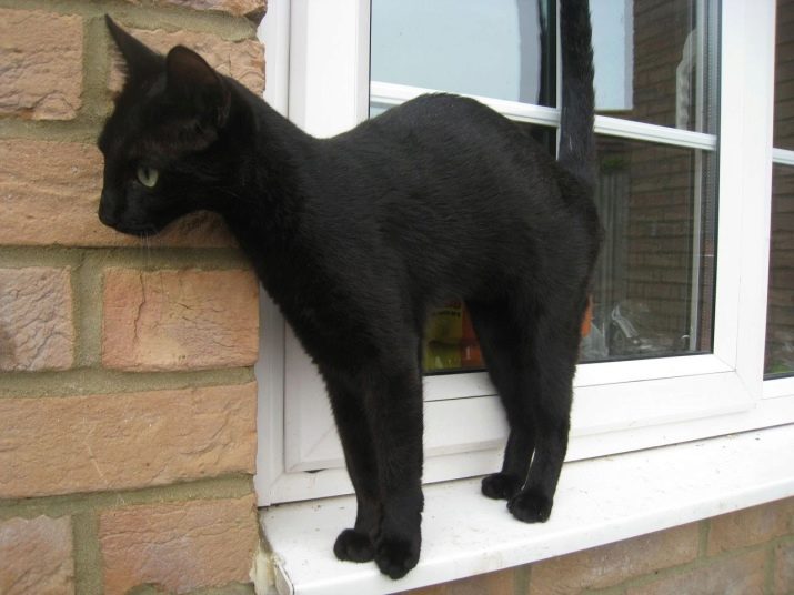 Description of this breed is rare. This is a short-haired cat with black hair. She is graceful and elegant. She has the external features of Russian blue: the overall graceful structure of the body, short fur, eye color. However, the black cat is different in character.