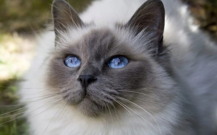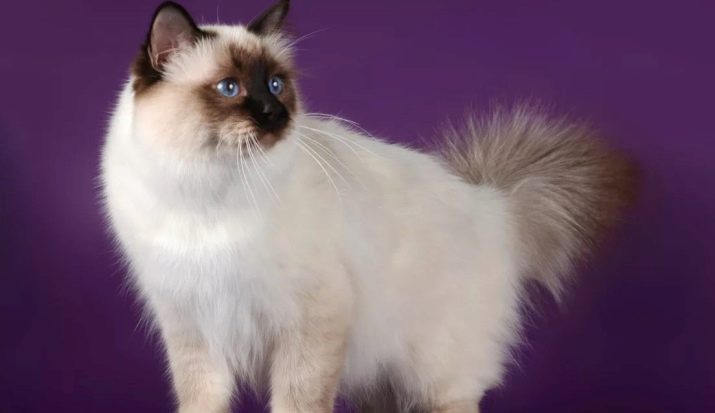 - Ragdoll. The appearance of the representatives is similar to Burmese cats, but differs in a more dense physique. The coat is semi-long with a characteristic color point color. The eyes are wide and expressive, the iris is intense blue, can be different shades.
