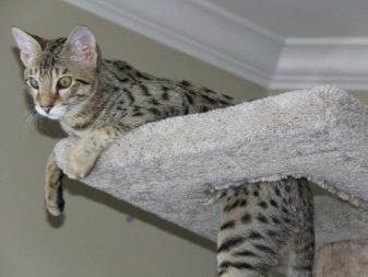 Large eyes with an almond-shaped incision are located on a large head with well-defined cheekbones. The body of the cat is elongated, the muscles are well developed, the tail is long and flexible throughout, the legs are long and strong. Thick cat hair is able to repel water from itself.At home, cats have shown themselves to be friendly and affectionate for their owners. The safari has a strongly developed instinct for the hunter, so it is better not to keep them near small children, birds and small rodents. These big bold cats can get along with other representatives of the cat family and even with dogs. The animal has good health and does not suffer from genetically transmitted diseases. Breeding safari cats is very difficult, so it is difficult to get them in Russia, as there are currently no special nurseries.