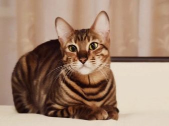 - Toyger - Cats are a mini copy of the Bengal tiger. The breed was bred by American breeders by crossing Bengal and domestic striped cats. Since 2007, the breed has been officially registered with TICA. Toyger is considered one of the most unusual and rare breeds in the world. Animals are incredibly jumping and can jump to a height of 2-3 meters from a place. The weight of an adult can reach 7-8 kg, the coat color is golden beige with black stripes, eyes are bright green or amber yellow. Toigers perfectly take root in the family, like to swim, walk and play. These cats make hiding places in the house, where often you will find your missing things.