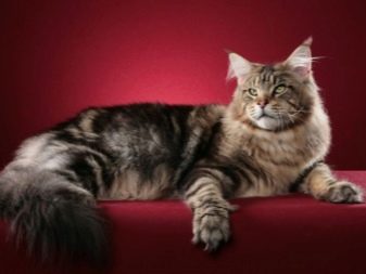 - Maine Coon - One of the largest domestic cats bred in America. In length, this breed can reach 1 meter, and in weight - 15 kg. The breed has gained worldwide recognition for its high intelligence and appearance. The body of this cat is large, the hair is long, with a thick undercoat, the tail is long and very fluffy, the head is large, with large ears of a triangular shape, at the ends of the ears are brushes, like a lynx. Paws are medium sized, powerful. The head has a slightly flattened structure and an enlarged nose. The coat color can be gray, black, tortie. Maine Coon's character is flexible and kind, cats get along well with people and animals.