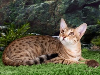 - Ocicat - a miniature cat that looks like a wild ocelot. The breed was bred on the basis of the genetic material of the American Shorthair, Abyssinian and Siamese breeds. It has a peaceful nature and quickly gets used to the owner.