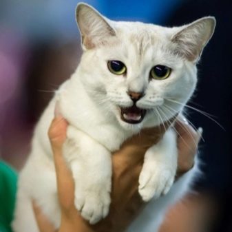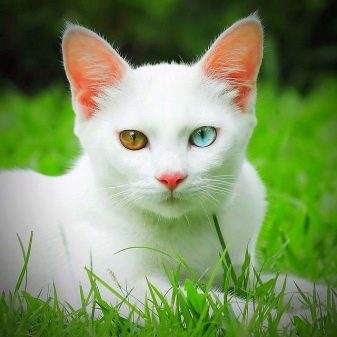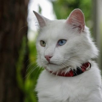 This is a very rare breed and because of the variegated eyes, animals have no advantages at exhibition events - they are brought for demonstration, and not for competition. These cats are classified as pets, which are very peaceful in nature. The color of the short coat at kao-mani is always only white, one eye is blue and the other is emerald. The body is elongated, with well-developed muscles, the tail is long and flexible.
