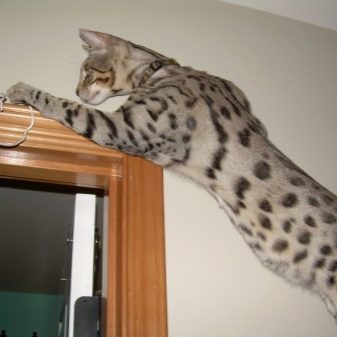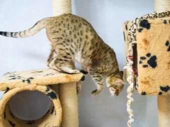 - Activity and thirst for adventure. For these cats, a large area with climbing obstacles is vital. The same applies to active games and entertainment, without which these cats can not live a day. Such injustice has a price - often savannahs, succumbing to excitement, can overturn or overturn something fragile. In addition, the savannahs are very inquisitive and often like to poke their nose into the premises closed to them.