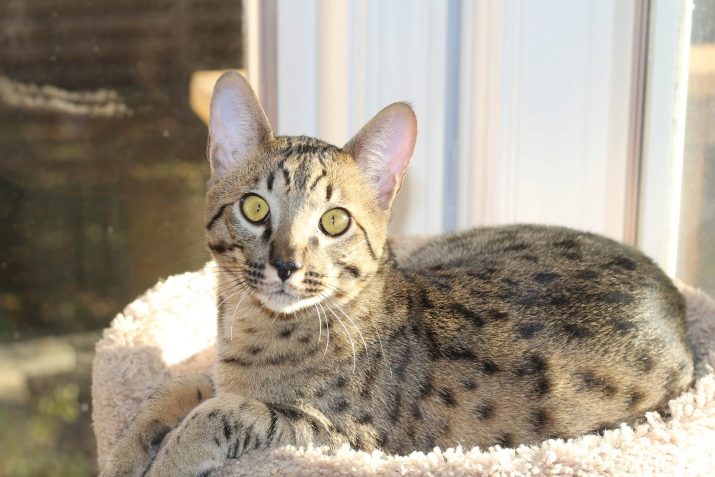 The girl was given the name Savannah - for her amazing color and similarity to the cheetah. This generation, a mixture of Siamese domestic cat and serval, was called F1. Very soon, already from a thoroughbred Angora cat, Savannah gave birth to several kittens, the generation of which was named F2.