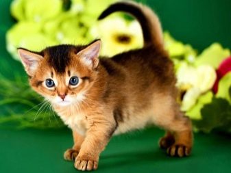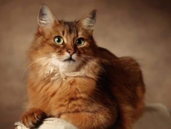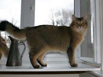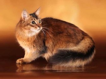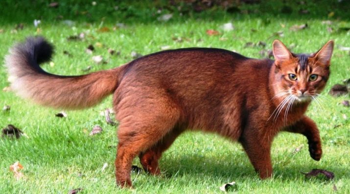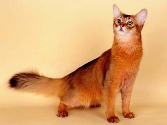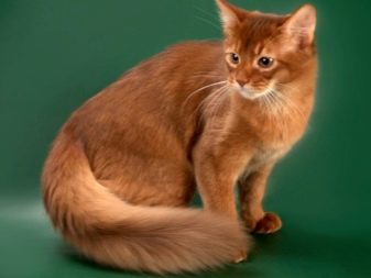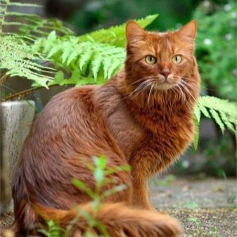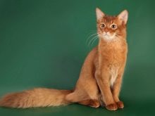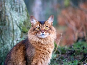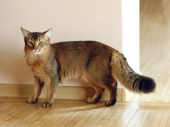 Cats grow up to 26–30 cm in length, up to 30 cm in height, and weigh 3.5–5 kg. Somali cats are very bright, attractive animals. Due to the contrasting colors of the muzzle and large ears, as well as the inquisitive look, they look like chanterelles. The similarity enhances the furry tail.