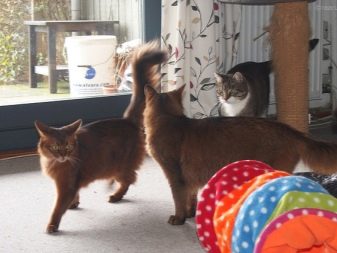 After walking the cats must be washed. Somalis are completely calm about water, in addition, they exclusively trust the owner, so there should be no problems with bathing and washing paws. Somalis need toys, claws, and other games. It is advisable to change the toys so that they do not bother the cat. Because if this happens, a curious animal will go looking for "toys" on the table or bedside table of the owner.