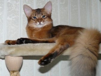 Somali cats are very beautiful. They look like real aristocrats - flexible, graceful, with a fluffy "fox" tail, a piercing look and a sophisticated collar. At the same time, they are curious as kittens, playful, tender - real companion cats. If you are looking for a kind and cheerful, yet unobtrusive cat with the character of a dog, there is no one better than a Somali.