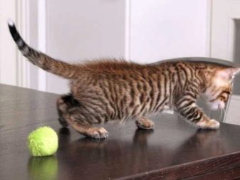 A toy tiger cub is not a bad animal, therefore it is difficult to follow its figure. The owner should not forget that excessive feeding of a toyger can cause its fullness. A large weight can lead to a malfunction in the work of internal organs and their systems.