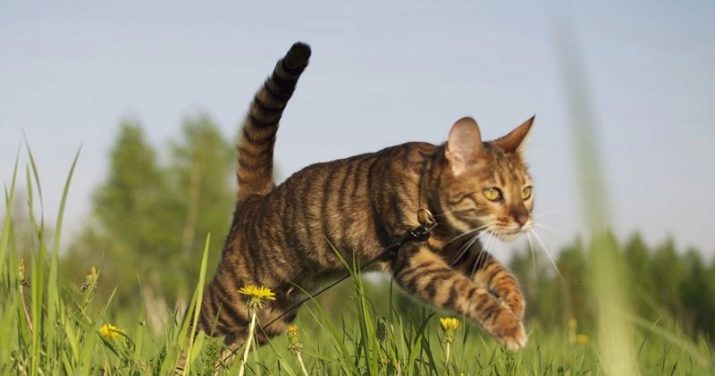 When breeding, toygers lacked a trace instinct, that is, if a pet is lost, he will not find his own way home. Due to this feature of the breed, special attention should be paid to animal safety. It is recommended to accustom the toyger to the collar, on which the address will be indicated and the bell will be attached.