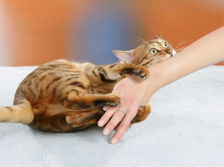Turning their ears back, the cats seem to notify that they are ready for the game and show interest in something. A lot of things will tell attentive people and the pose that the animal takes. Lying on his back, he thereby shows absolute confidence in the owners. But in relation to dangerous animals it is rather “preparation for battle”. When such a pose is taken suddenly and for no apparent reason, then, most likely, the point is a subconscious attempt to train hunting skills.