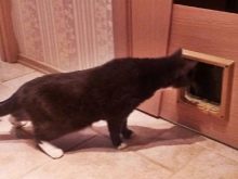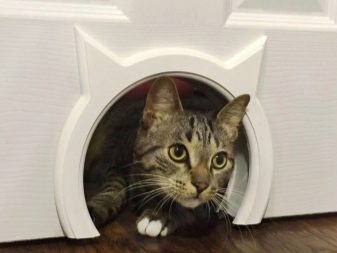 It is best if the door appears in the house at the same time as the kitten. If the animal is an adult, certain difficulties may arise.If the cat cannot adapt or is afraid to use such an aperture, time, patience and training will help.