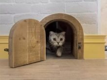 Sometimes design features do not allow you to make a hole low - in this case, the height should be quite comfortable for the animal.