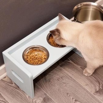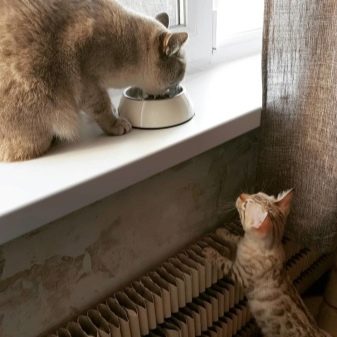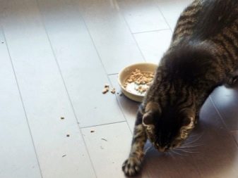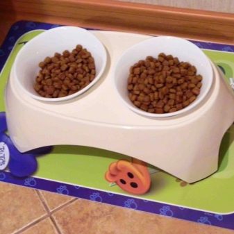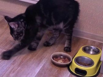 Remove the bowl to another place, cover the place where you eat with a rug, you can use a thick oilcloth, do not distract the cat when it dines, and carefully make sure that other family members do not distract it. A more effective way is to put bowls of food and water on the windowsill or on the rug near her bed, protect your pet from possible irritants.