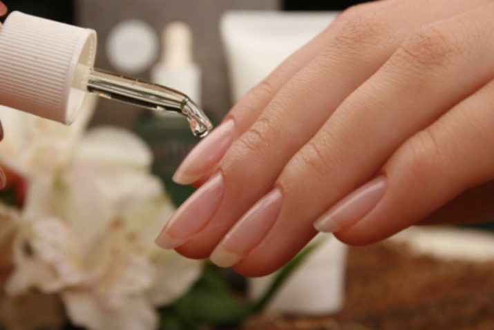Oil products can be used in different ways. Very healing rubbing or short-term massage. Particular attention should be paid to the edges of the plate, where the nail is in contact with the skin. It is in these places that the oil is better absorbed, and valuable substances for health penetrate faster. One of the recipes for strengthening and nutrition of the nail plate: to 10 ml of the main oil (olive, grape seed, avocado) add 4 drops of lemon, rosemary, 2 drops of pine and chamomile.