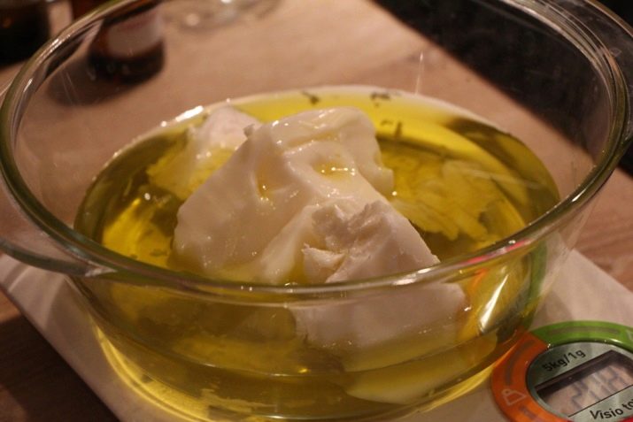 If the oil product is in a solid state, then it must be heated until it reaches a soft texture. Jojoba oil is also advised to warm up to 40 degrees. Then the ingredients are mixed manually using a whisk or mixer.