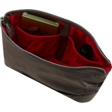 The famous German company Jack Wolfskin produces classic travel cosmetic bags. The mirror they are equipped with has Velcro. It is simply removed and hung back. Cosmetic bags have zippers, mesh pockets, and many other departments that help sort out all the toiletries. The material with which such cosmetic bags are made is practical - this is Armatech Plus 600D. The fabric is distinguished by thin weaving. The makeup bag has a hook for hanging.