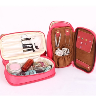 These are flat models that have a bottom with a recess. All bracelets and chains are placed in it. Inside, it is made of soft material, such as velvet. This does not allow jewelry to break.There are many pockets where you can put pendants or earrings.