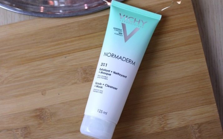 - 3-in-1 Cleanser Normaderm 3 in 1 Scrub + Cleanser + Mask by Vichy. Universal tool of high quality. The composition includes salicylic and glycolic acids, kaolin, white clay, active microparticles, which provide optimal care for oily and problem skin. The drug can be used as a daily cleanser, scrub - to clean clogged pores and improve skin texture, as well as a mask that supports haze throughout the day. Each application depends on the purpose of use and is described in detail in the instructions. Gives the skin softness, after applying a feeling of dryness does not occur.