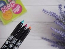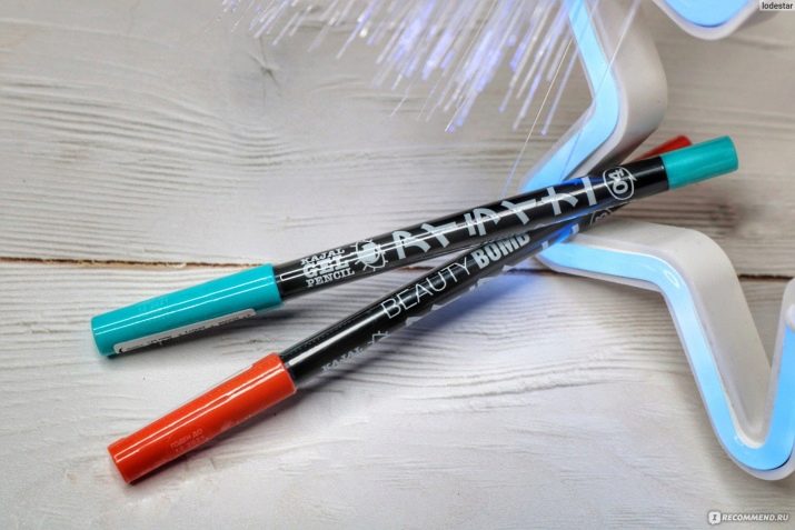- Pencil kayal. Not just eyeliner, but a real explosion of color. The product is very persistent, forms an even, clear line, suitable for creating fashionable double arrows. It will be necessary to remove it from the eyes with special compounds. The color palette is diverse: ultramarine, orange neon, fuchsia and classic black.