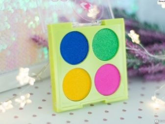 - Harajuku. This eyeshadow palette is incredibly bright. Inspired by Tokyo's Harajuku district, designers offer 4 trendy colors that can be combined without limits. Violet, green, fuchsia or yellow - each shade can be used as an independent element or with a base applied with a double-sided eyeliner.