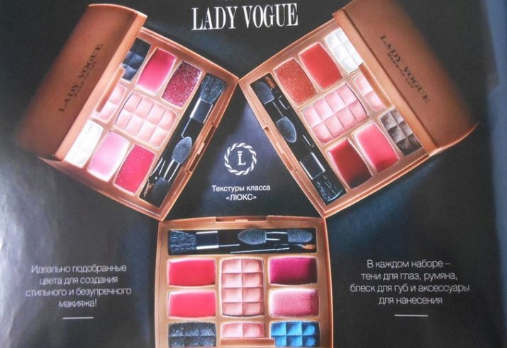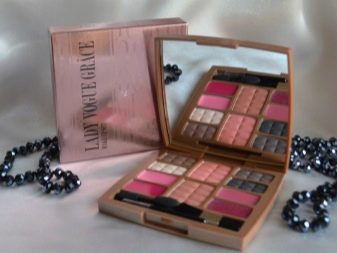 - Set of decorative cosmetics Lady Vogue Grace. Got a lot of good reviews and was especially liked by girls who appreciate bright accents in lilac colors. The set is represented by 4 shades of shadows, lip gloss, 4 tones of texture shine and two shades of blush. This is enough to create both everyday gentle and festive bright makeup.