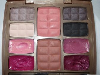 The eye shadow included in the kit is a novelty in the cosmetic market, they can be applied with both wet and dry sponge. Each type of shadow is divided into small squares, which simplifies their selection.