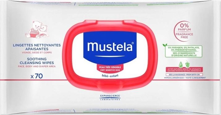 Mustela brand produces disposable wipes for cleansing and moisturizing the buttocks and diaper cream. They allow not only to quickly carry out daily care of the baby, but also relieve it of possible redness.