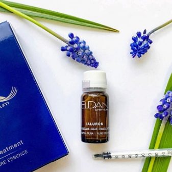 Eldan Cosmetics product range includes a series of products with hyaluronic acid (Ialuron), included in the Premium line. The series includes creams for dehydrated and dry skin, a moisturizing serum fluid with D-panthenol and an active essence with allantoin. As auxiliary components in the composition of these funds, natural oils, extracts of medicinal plants, tocopherol are used.