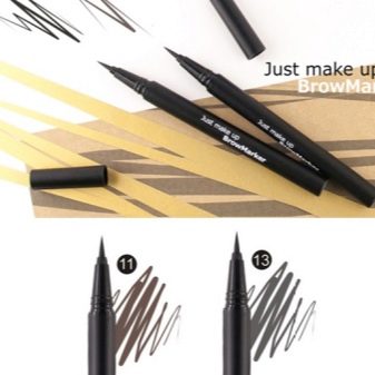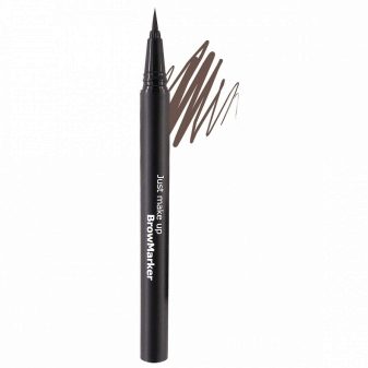 - Eyeliner-marker for eyebrows Just Brow Maker. Helps to draw thin hairs, forming a beautiful and natural line. The felt-tip pen easily replaces microblading, it is equipped with a brush that provides a change in thickness. The product is moisture resistant, shake the tube before use, there are gray and beige tones.