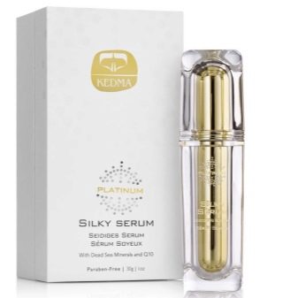The Kedma Platinum Series is an ultimatum of old age. Cosmetics in this series contain coenzyme Q10. It fights against free radicals, counteracts the harmful effects of the environment. Eye cream contains peptides, collagen, hyaluronic acid, ginseng root extract. Platinum silk serum is a gentle remedy with coenzymes. It is easily absorbed, moisturizes the skin, saturates it with useful substances.