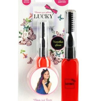 - Hair dye. Hair dye is washed off with ordinary shampoo. The package has a brush lid, thanks to which it is easy to distribute the dye through the hair and dye small strands.