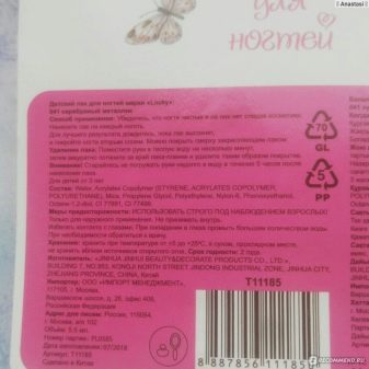 - varnishes from this manufacturer are made water basedthat will keep children's nails in good condition, and their removal does not require special fluid;