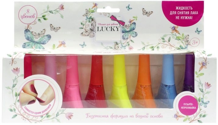 Buying Lucky children's decorative cosmetics, you can not worry about the skin of the child.The composition of the products does not contain any harmful components, does not irritate the skin, is not absorbed into it and is easily washed off with water. All packages are absolutely safe and made of plastic, even toilet water is packed in plastic containers, which means that it will not break and will not hurt children's hands. But still you need to be careful when buying and pay attention to their composition.