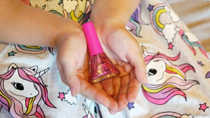- Nail polish. The palette of children's varnishes of this company is very diverse. The formula of this product is designed so that the varnish is easy to wash with water. Children like to not only paint their nails, but also to remove the coating. Lacquer is good, as many mothers say, one layer is enough to cover without bald spots. Varnish does not strip, and a convenient bottle - non-spill, allows you to leave the furniture in its pure form. But to remove the varnish, you need not just rinse your hands with water.You need to hold your fingers in water for about 10 minutes, and then pull the film off the nail plate.