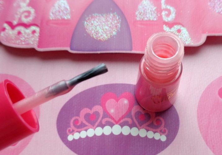 - Nail polish. The range of shades is quite wide, and even the most demanding young customer can choose the right color. Parents in this tool are attracted by the absence of a sharp chemical smell and the ability to easily wash off the varnish. Children's fragile nails do not deteriorate under a special coating. In addition, varnish is also offered for older girls - these products are characterized by increased resistance compared to varnish for the smallest princesses.