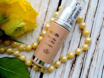 The lines Complimenti, Skin perfection and Double touch are presented tonal foundations . A definite plus of each product is a convenient jar with a dispenser. These products are enriched with vitamins B and E, have moisturizing and firming properties. The tonal bases are well pigmented, applied easily without clogging the pores.